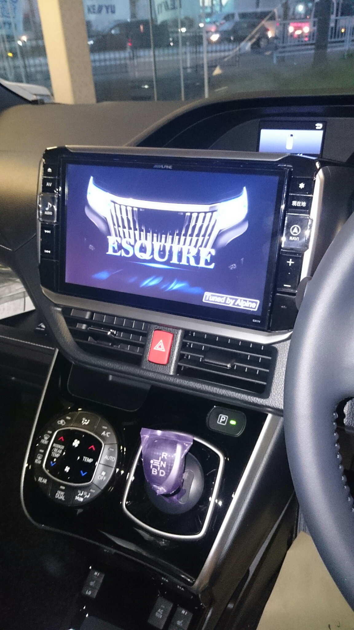 エスクァイアにアルパインビックXの取り付けを行いました! 業界最大サイズの11インチのナビゲーションで迫力満点ですね。