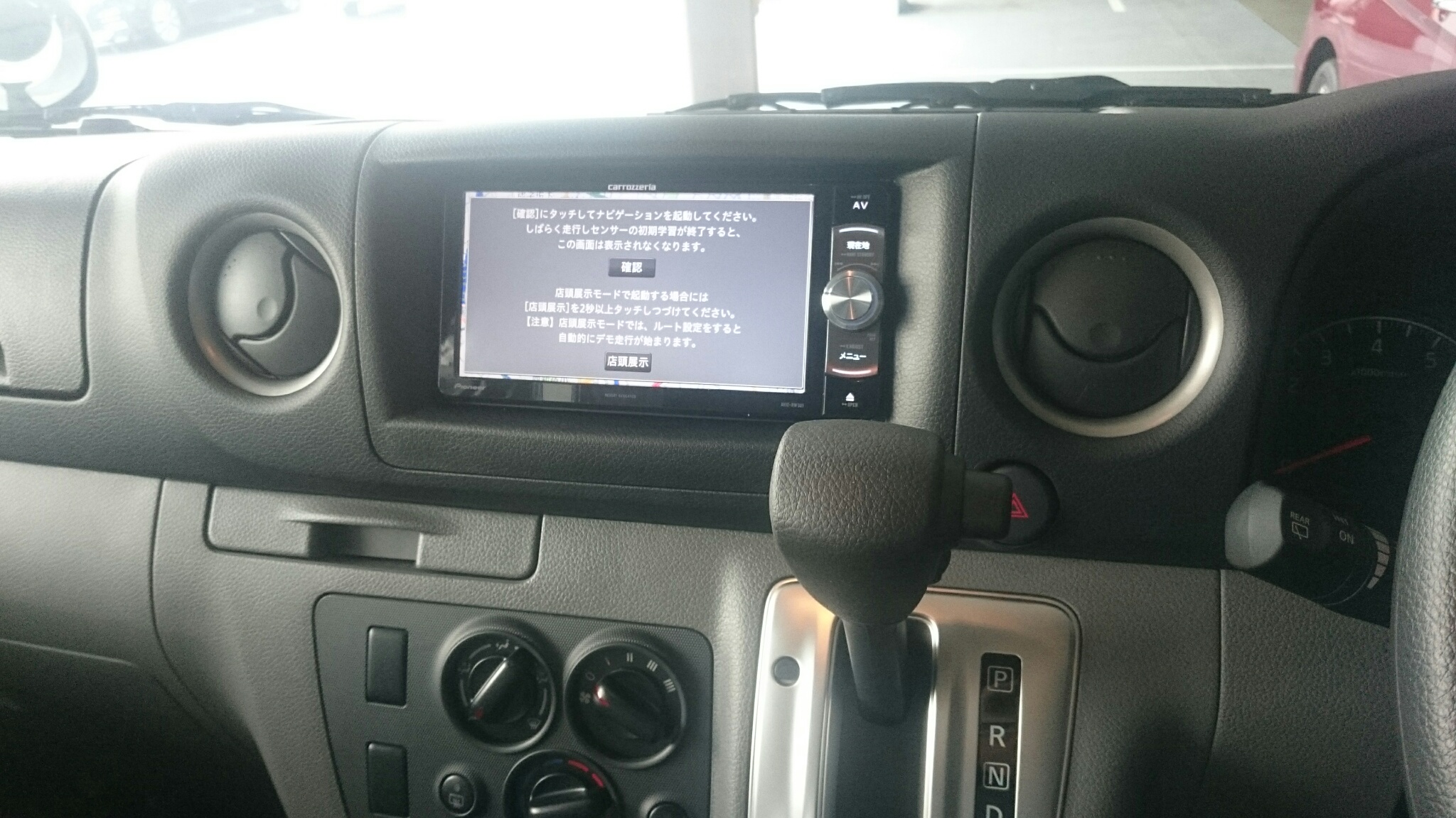 NV350にナビの取り付けを行いました! 簡単な使い方がとても人気の楽ナビのスタンダードモデルでナビ機能はしっかりしたいという方にはおすすめです。