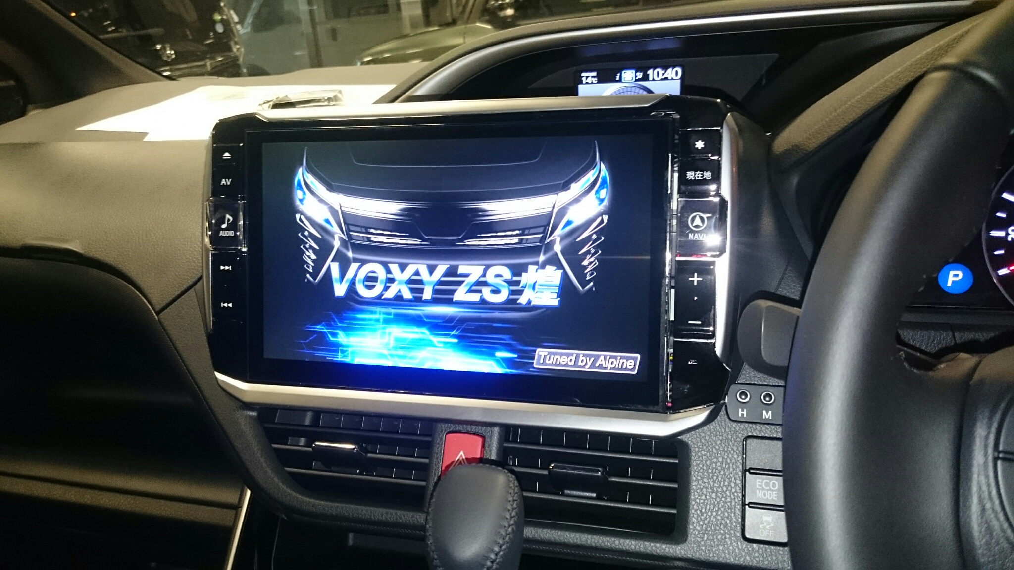 ヴォクシーにアルパインビックXの取り付けを行いました! 専用のオープニング画面がかっこよく迫力満点で機能も充実なのでおすすめです。