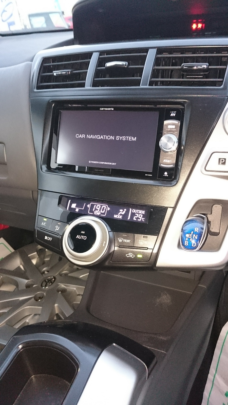 プリウスα。楽ナビの取り付けを行いました! 人気の楽ナビの上級モデルで簡単な操作がとてもオススメです。