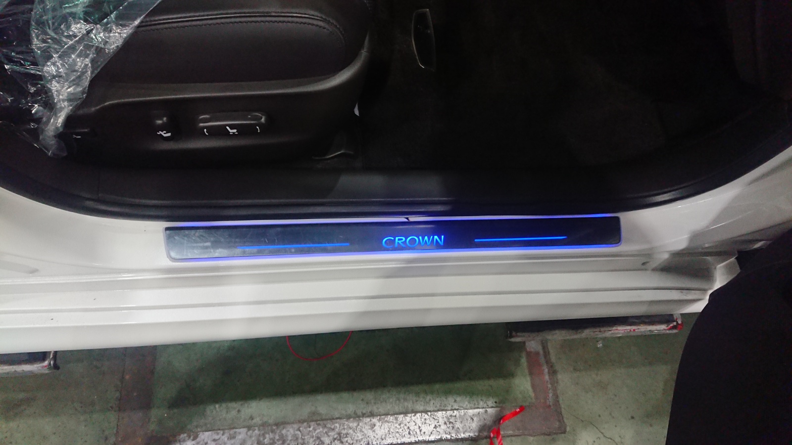 クラウンにスカッフイルミプレートの取り付けを行いました!
