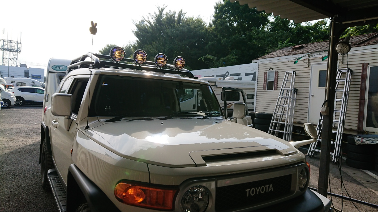FJクルーザー。ルーフライトの取り付けを行いました! オフロード感が増していい感じですね!