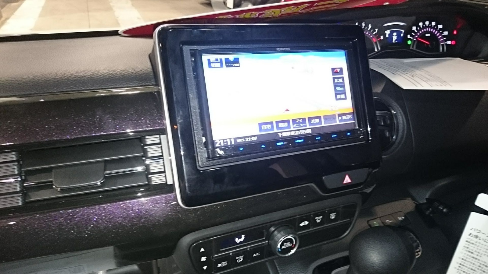 N-BOXにナビの取り付けを行いました! 純正ナビ装着パッケージのカメラやステアリングスイッチも使えるので検討中の方は一度お問い合わせ下さい。