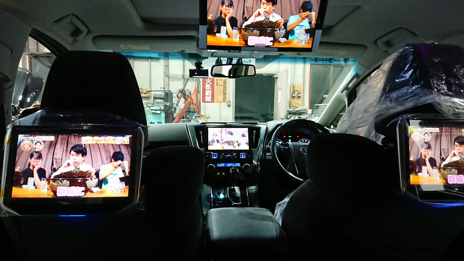 ヴェルファイアに後席モニターの取り付けを行いました! すべてのモニターがHDMIで接続されているのでとても高画質です。