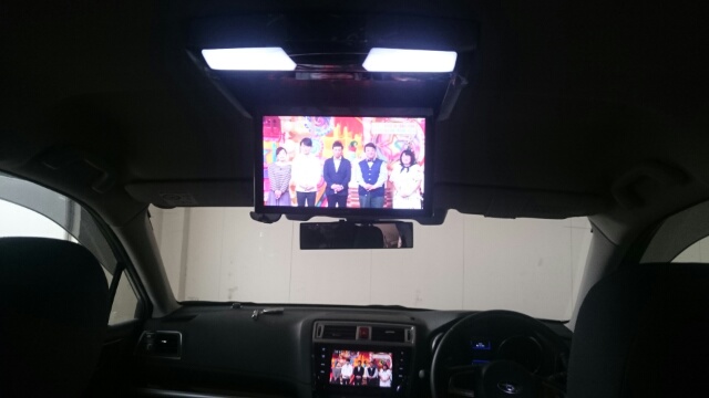 スバルのアウトバックにフリップダウンモニターのとりつけを行いました。