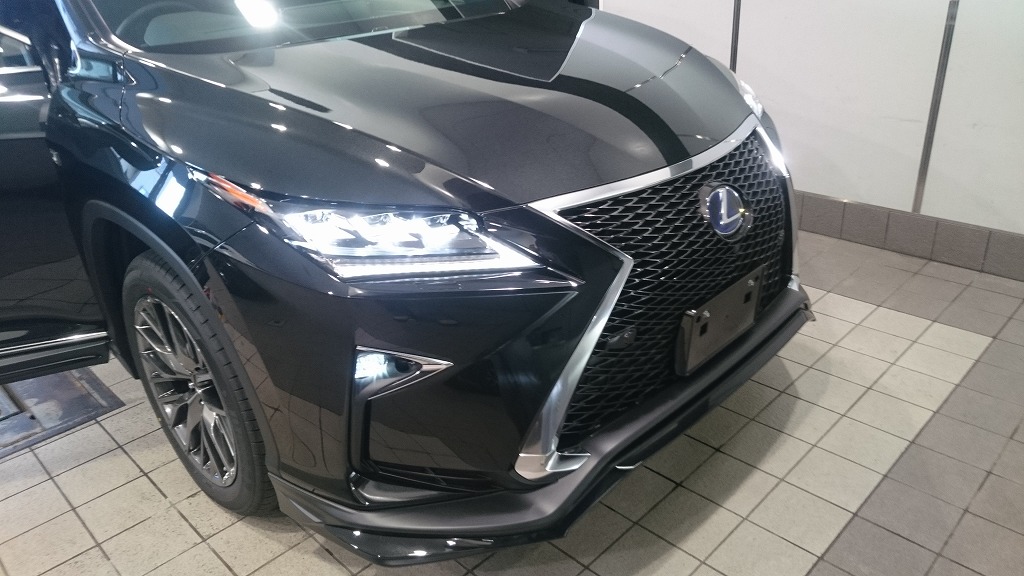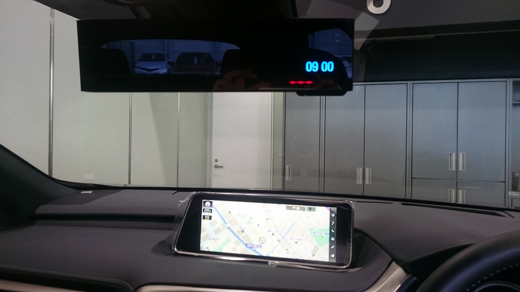 レクサスの新型RXにルームミラー一体型レーダー探知機の取り付けを行いました。