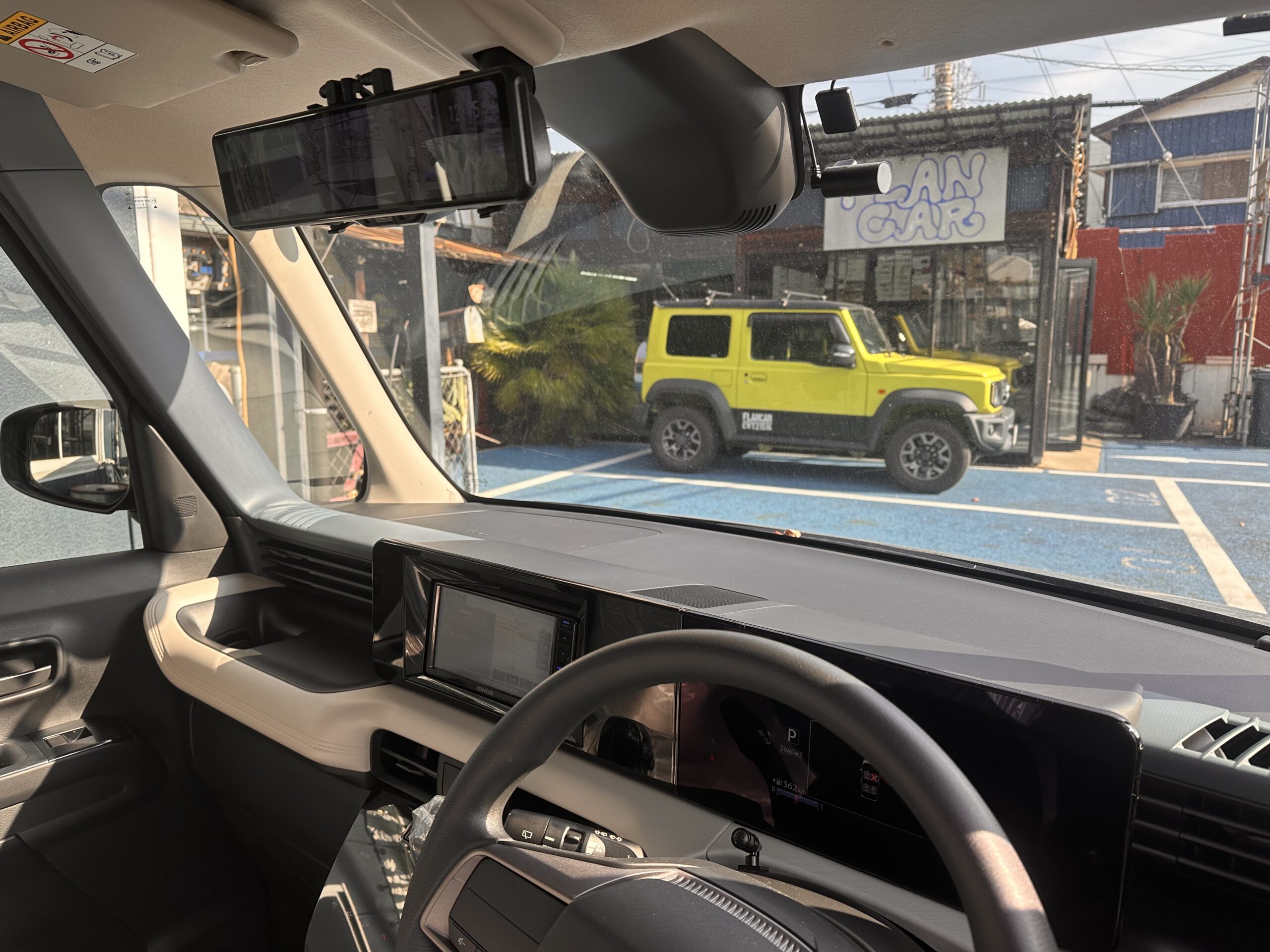 デモカー納車を迎え、いち早く社外7インチナビ/デジタルインナーミラーを取付けました。