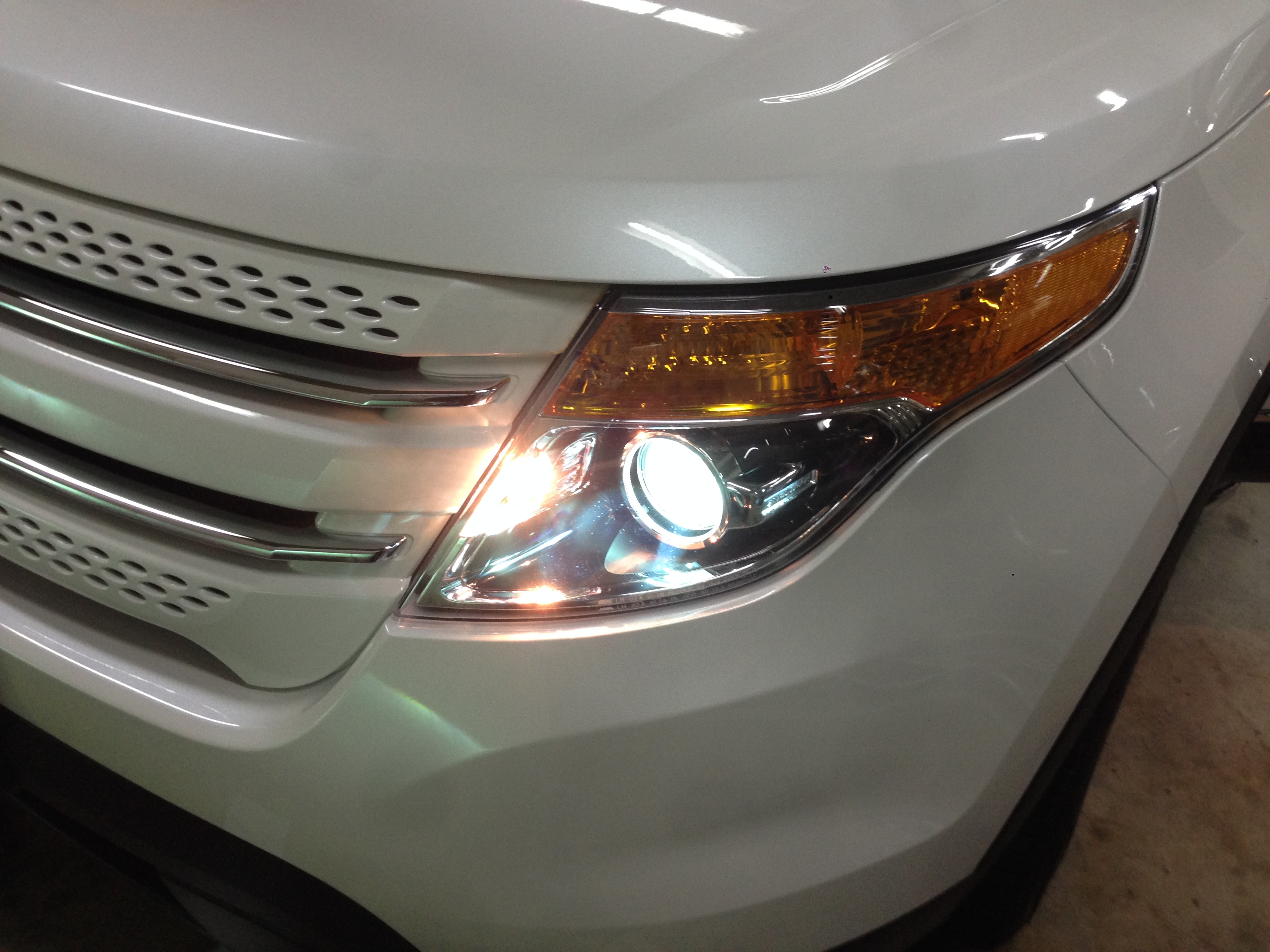 フォード エクスプローラーにHIDキット取付です。 2015年式までは、純正バルブがハロゲンなので、HIDキットの取付がおススメです。